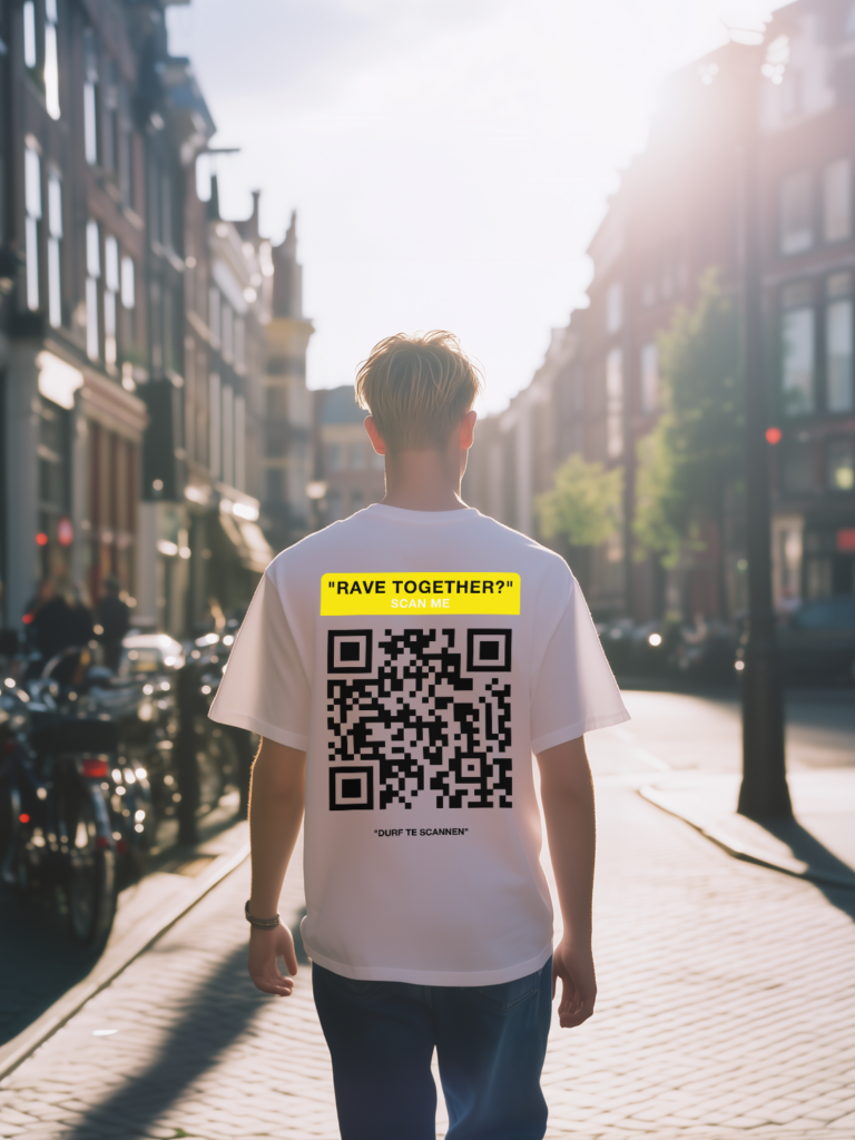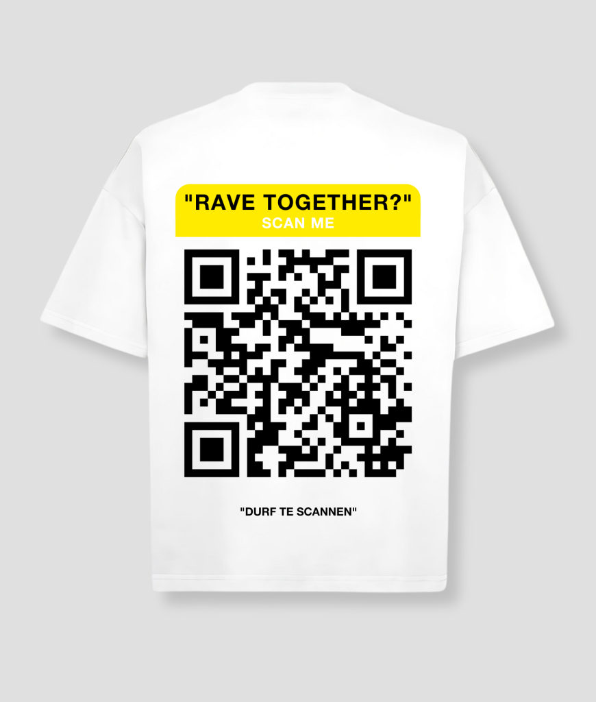 Maak kennis met ons QR Social Oversized Shirt! Het maken van vrienden op een festival of rave was nog nooit zo makkelijk. Met een opvallende QR-code op de achterkant kun je moeiteloos iemand volgen of een dm sturen, kies een opdruk die bij jou past. De opdruk zit op de achterkant.
