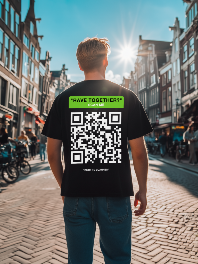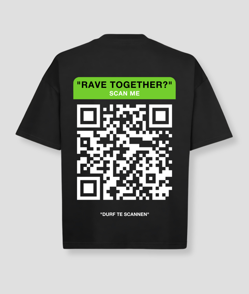 Maak kennis met ons QR Social Oversized Shirt! Het maken van vrienden op een festival of rave was nog nooit zo makkelijk. Met een opvallende QR-code op de achterkant kun je moeiteloos iemand volgen of een dm sturen, kies een opdruk die bij jou past. De opdruk zit op de achterkant.