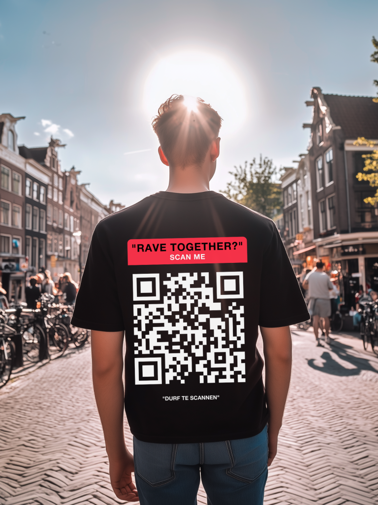 Maak kennis met ons QR Social Oversized Shirt! Het maken van vrienden op een festival of rave was nog nooit zo makkelijk. Met een opvallende QR-code op de achterkant kun je moeiteloos iemand volgen of een dm sturen, kies een opdruk die bij jou past. De opdruk zit op de achterkant.