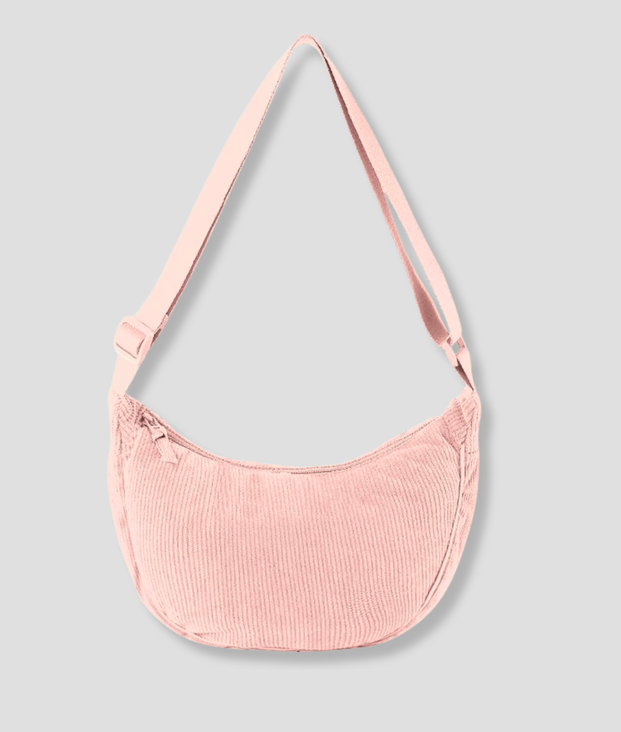 Een zachte en ruime schoudertas met een comfy corduroy look. De lichte roze tint geeft een frisse, speelse vibe. Ideaal voor dagelijks gebruik zonder gedoe.