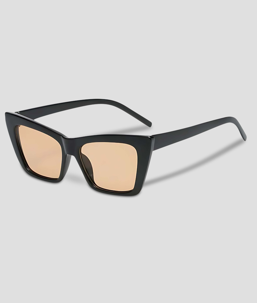 Sculptor oogt alsof iemand een cat-eye door een Y2K filter heeft gehaald en ‘m daarna klaar heeft gemaakt voor de rave. Hoekig, hoog uitgesneden aan de buitenkant en toch clean aan de voorkant. Het glanzend zwarte frame snijdt je silhouet scherp, terwijl de peach/amber lens alles een zachte gloed geeft—alsof golden hour de club is binnengelopen. Techno bunker, hardstyle main of die onverwachte rooftop after: met Sculptor zie je eruit alsof je al jaren backstage loopt. Dit is runway-energie met nachtleven-DNA, amigo.