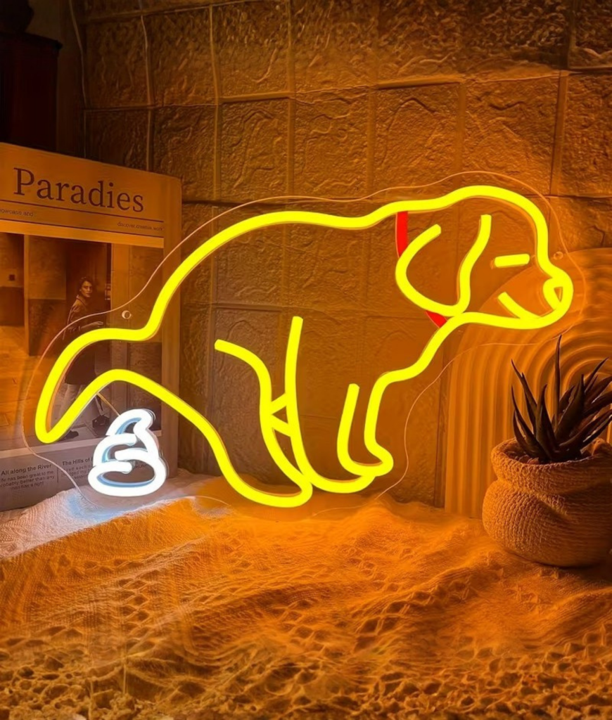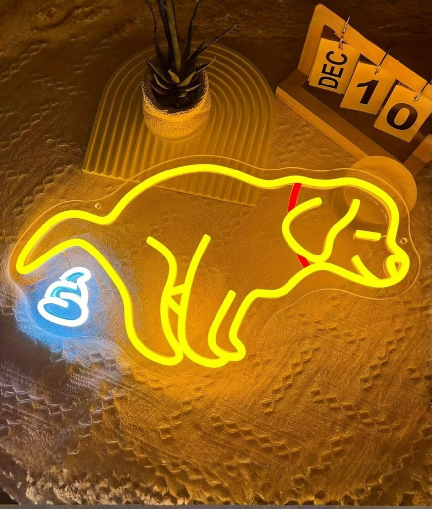 De Shitty Dog neon is lollige chaos in lichtvorm en dat is precies waarom hij werkt.