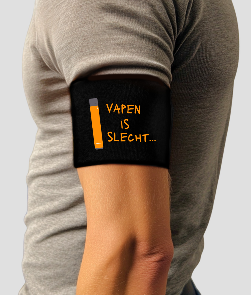 Deze aanvoerdersband is voor de leider die zijn eigen keuzes maakt! “Vapen is slecht.” Draag deze band met trots en laat zien dat jij bewust kiest, klaar voor actie op festivals en Koningsdag!