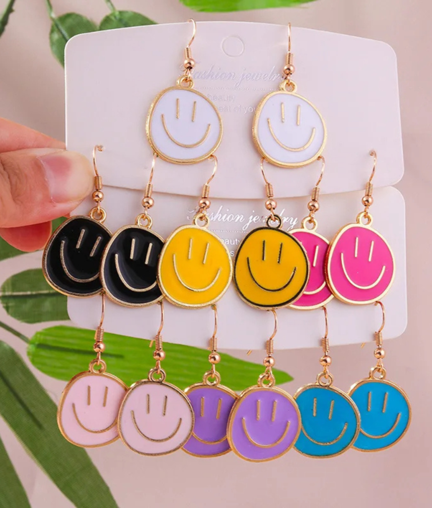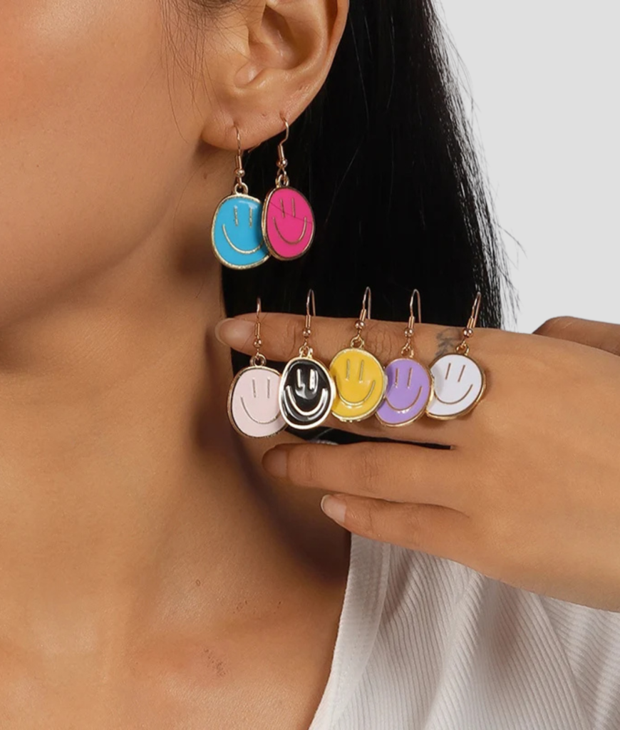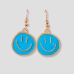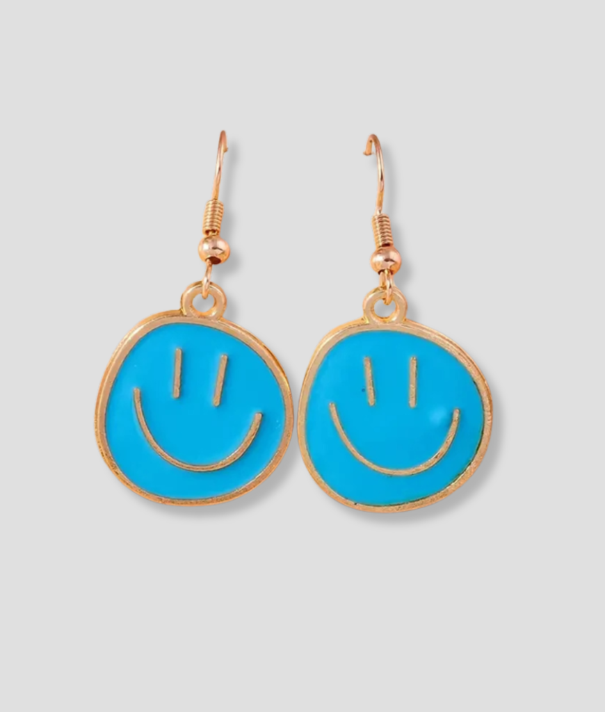 Blauwe smiley oorbellen, voor de vrolijke ravers onder ons.