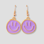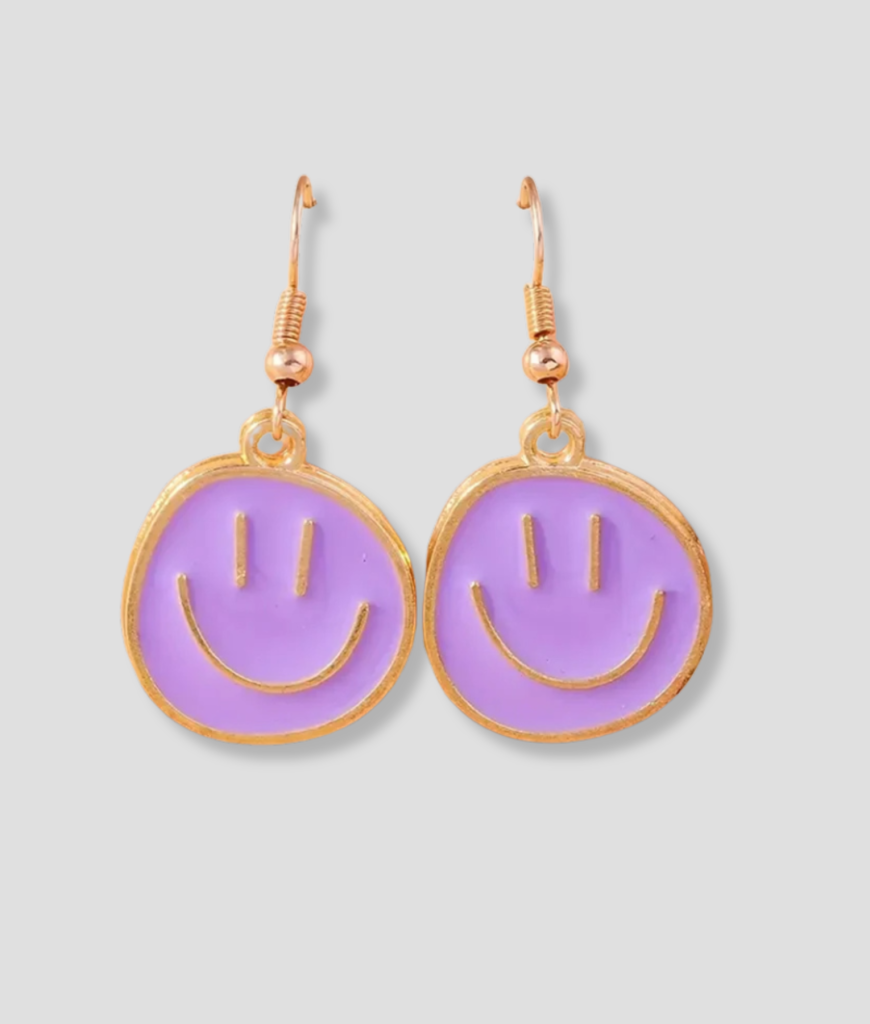 Paarse smiley oorbellen, voor de vrolijke ravers onder ons.