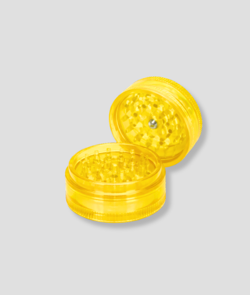 Compacte gele grinder voor het malen van “kruiden”. Door het lichte formaat neem je hem makkelijk mee naar festivals, feestjes of een weekend met vrienden.