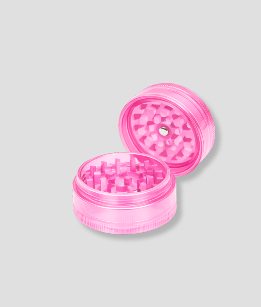 Compacte roze grinder voor het malen van “kruiden”. Door het lichte formaat neem je hem makkelijk mee naar festivals, raves of een feestje met vrienden.