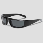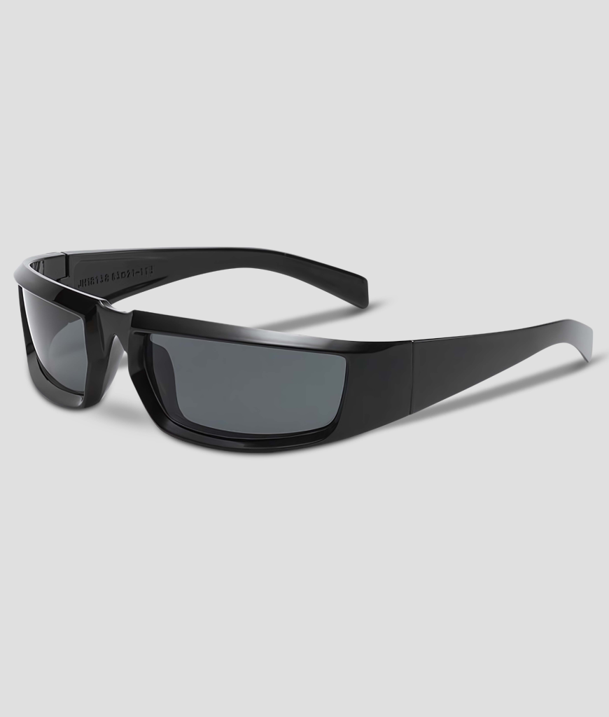Solaris is Y2K speed-shades met een moderne, strakke twist. Een rechthoekige, donkere lens in een diepzwart frame dat voelt als een gepolijste plaat. Minimalistisch, maar met attitude. In de rook van een techno-bunker, bij een hardstyle-stage of op een zonnig festivalveld—Solaris blijft stoïcijns en maakt jou het referentiepunt. Geen glitter nodig; jouw silhouet en die donkere lens vertellen genoeg. Amigo, het is alsof je “focus” draagt.