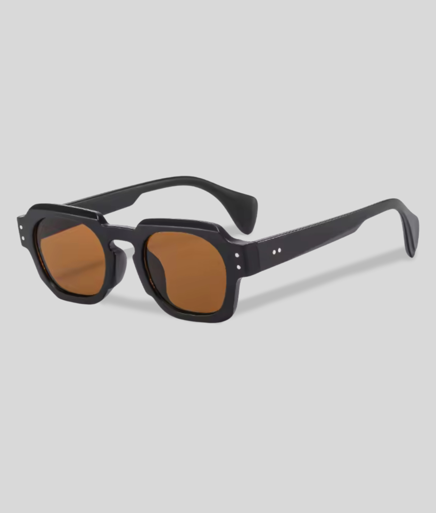 De achthoekige vorm geeft filmhoofdpersoon-energie zonder te schreeuwen. Het strakke zwarte frame matcht moeiteloos met linnen, denim, mesh en alles daartussen. De bruine glazen zetten overdag een mediterrane gloed neer en houden ’s avonds de lichten smooth.