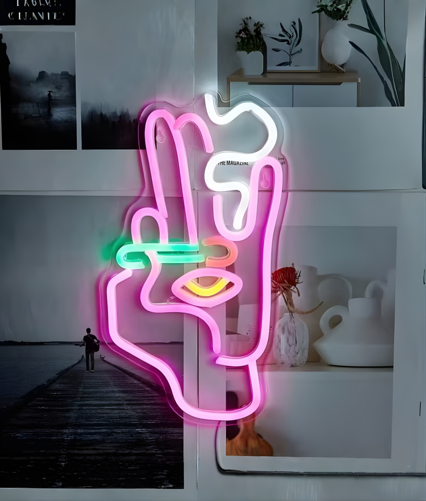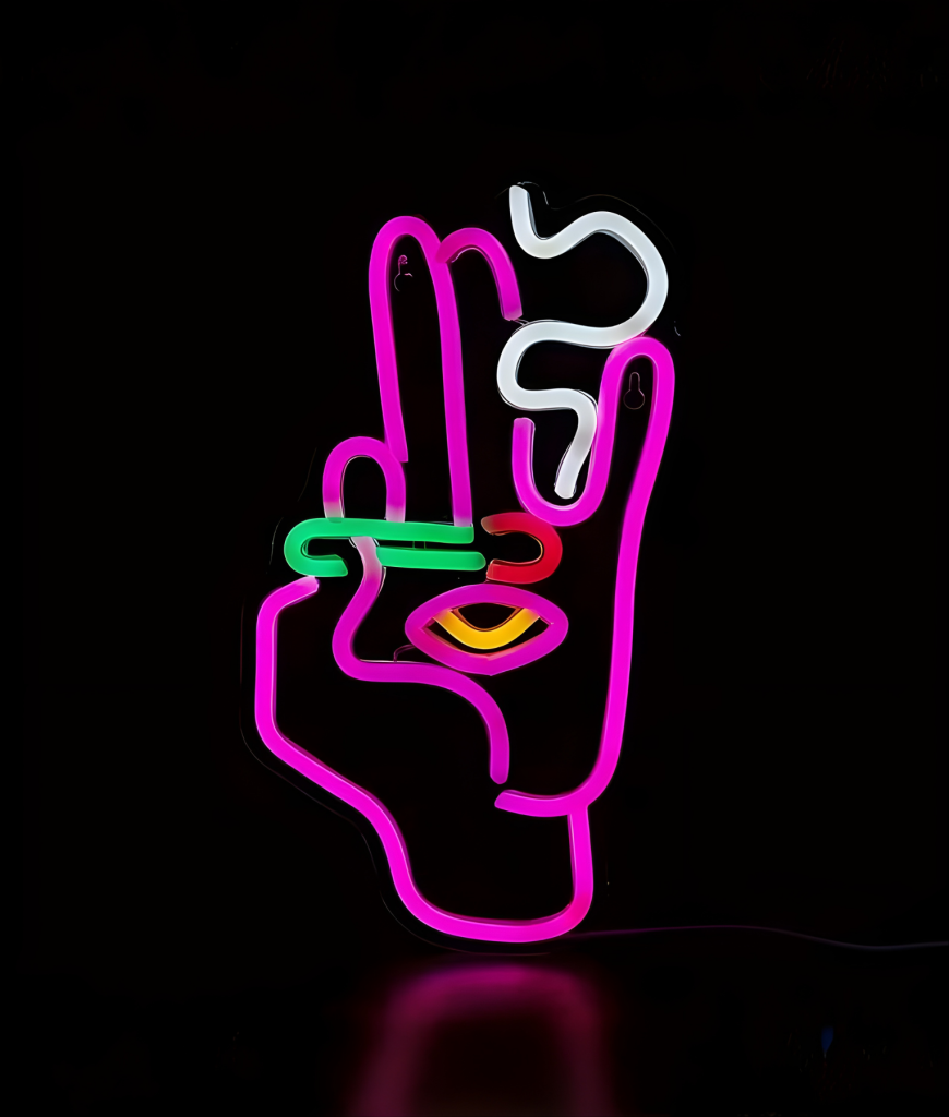 Deze Space Hand neon is precies wat je muur nodig had maar nog niet wist. Een dikke peace-hand in neon, met lagen roze, groen, geel en wit die samen voelen als een aftermovie van je favoriete festival. Je zet hem aan en je kamer verandert direct van “meh studentenkamer” naar “pre-party spot waar altijd iets kan gebeuren”. Dit is zo’n item waar vrienden binnenlopen, even stilvallen en dan zeggen: oké, jij neemt het nachtleven duidelijk serieus.