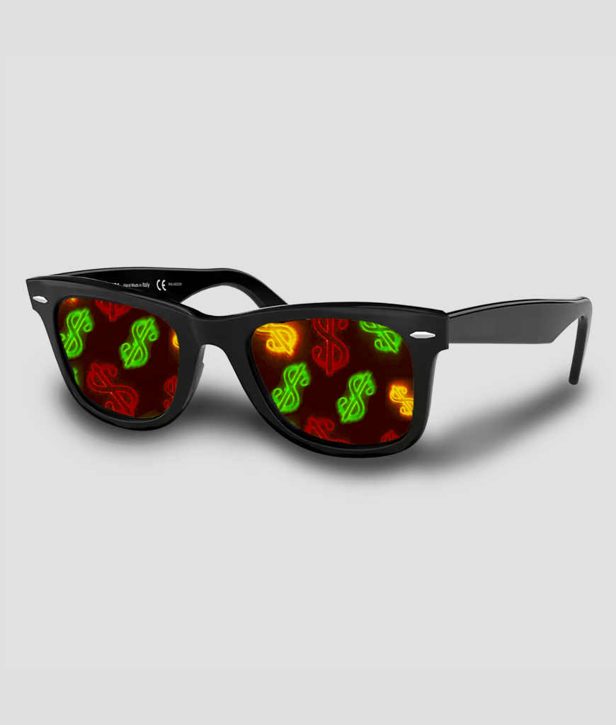 Kijk naar licht en zie overal kleine $-tekens schitteren. Lasers, lampen of straatverlichting: alles krijgt een rijke glow. Overdag zie je normaal, maar zodra de lichten aangaan begint het spektakel. Ideaal voor wie van opvallende gadgets houdt of zijn rave-look nét dat beetje extra wil geven.
