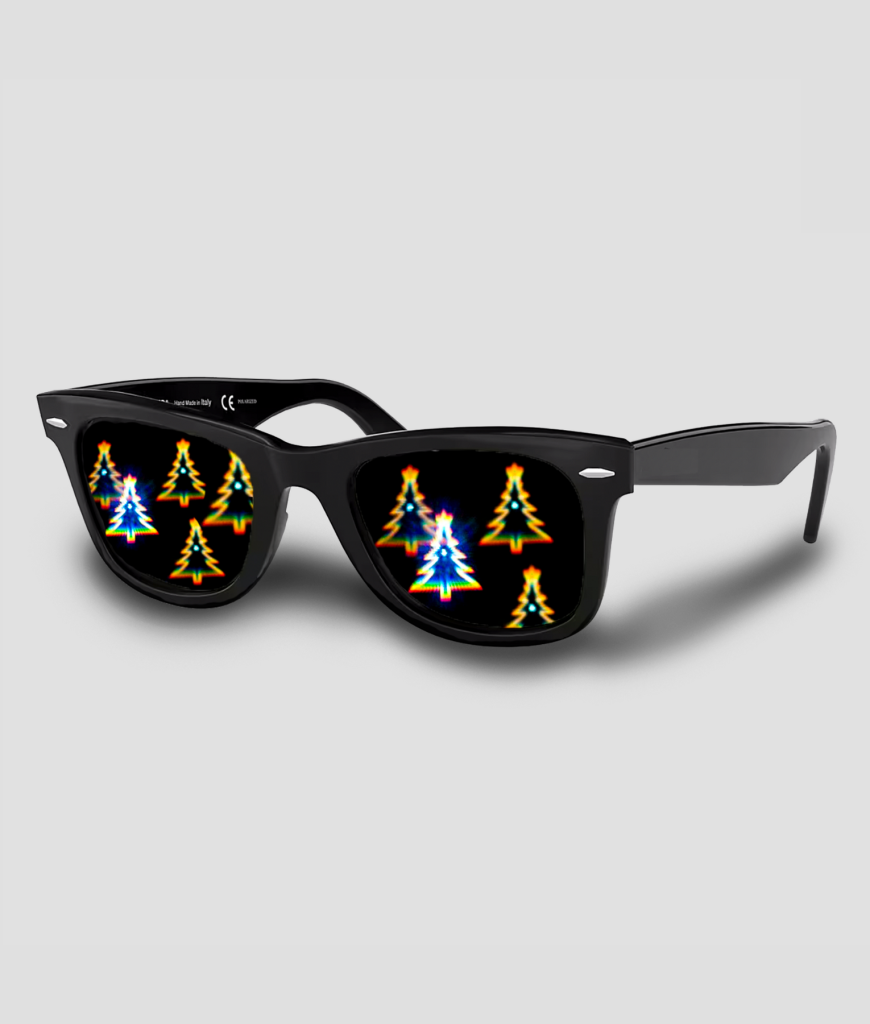 Zodra je naar lampjes of lichtreflecties kijkt, verschijnen er overal mini-kerstboompjes die lijken te dansen in het licht. Ideaal voor kerstfeesten, winterraves of gewoon om je avond een vleugje magie te geven. Overdag zie je normaal, maar zodra het donker wordt begint het spektakel.