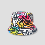 Zwart-witte basislijnen die zigzaggen als metrotunnels, daaroverheen een explosie van neonroze, oranje, geel, groen en blauw—alsof een writer ’s nachts de stad heeft wakker gespoten. De Splash Dome voelt als een kruising tussen street-art en festival seizoen: rauw, fris, brutaal. Onder stroboscooplicht lijkt de print te bewegen, op de techno stage vang je elke flits, bij hardstyle ben je het wandelende herkenningspunt van je vriendengroep. Dit hoedje zegt zonder woorden: jij bent niet hier om op te gaan in de massa, jij bént de highlight.
