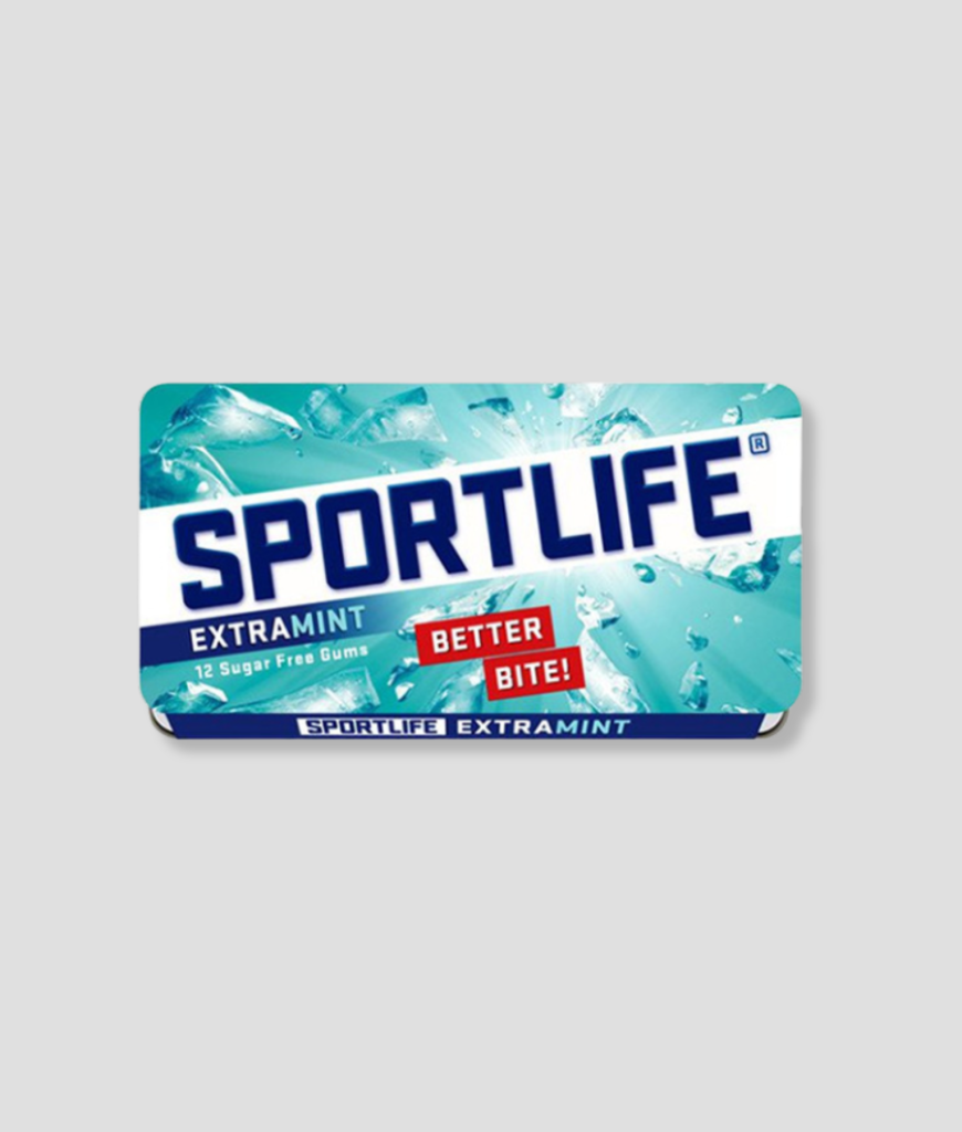 Sportlife Extramint suikervrije kauwgom met sterke, frisse smaak. Handig doosje voor onderweg en ideaal voor een frisse adem.