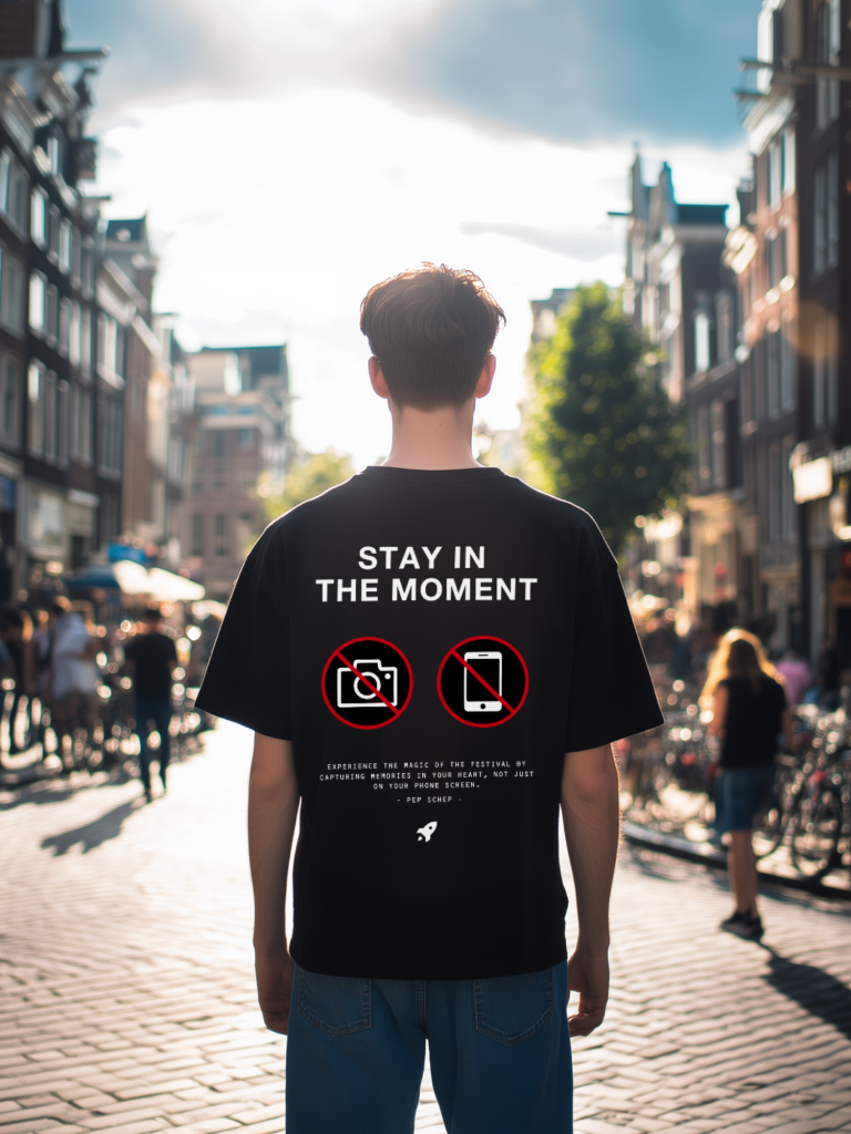 STAY IN THE MOMENT. En geniet van je momenten zonder telefoon of camera met jou mede ravers!