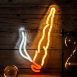 De vorm is slank, speels en net brutaal genoeg om meteen aandacht te trekken. Het lijkt alsof de rook langzaam omhoog kringelt, wat de lamp een levendige uitstraling geeft. Zet hem op een plank, hang hem aan de muur of gebruik hem als centerpiece in je chillruimte. Waar hij ook staat, Sticky Neon brengt karakter mee.