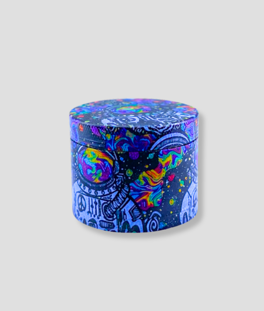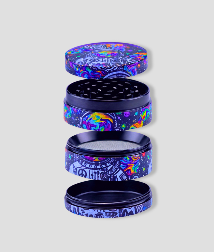 Deze grinder valt meteen op door het kleurrijke space design met planeten en psychedelische patronen. Hij is gemaakt om “kruiden” makkelijk te malen en netjes te verzamelen in verschillende lagen.