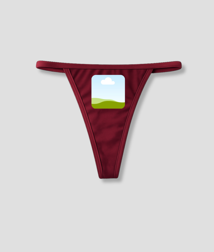 Rode string waarbij je je eigen foto uploadt. Jij kiest het beeld, wij drukken ’m op de voorkant. Klassiek stringmodel met minimale stof en een persoonlijke twist.