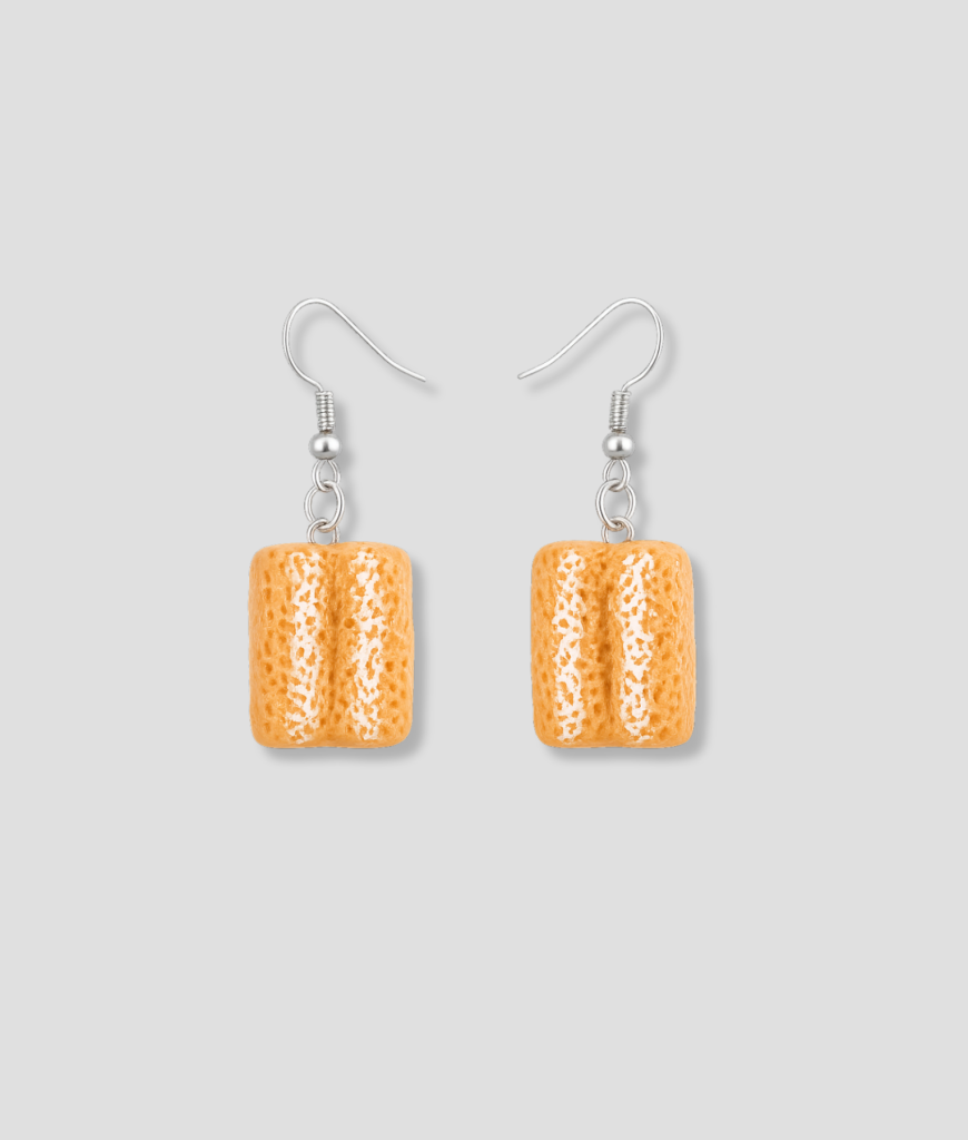 Dit zijn geen subtiele sieraden. Dit zijn oorbellen die zeggen: ik ben opgegroeid met kruidige lucht in de keuken en ik ben er trots op. Klein, herkenbaar, lichtjes goudbruin — alsof iemand een warme herinnering heeft gevangen en verpakt in glans. Iedereen die het snapt, snapt het meteen. Ze hebben die cozy vibe met net genoeg humor om mensen dubbel te laten kijken en dan te glimlachen.