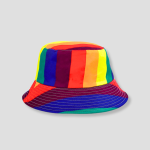 Strepen in volle regenboogtinten die niet vragen om aandacht maar ’m gewoon pakken. Rood, oranje, geel, groen, blauw, paars—een hele line-up op je hoofd. Op de techno stage knal je door het stroboscooplicht, bij de hardstyle main ben je het herkenningspunt voor je crew, in de nachtbus ben je die legende die er nog fris uitziet. Dit hoedje zegt zonder te praten: ik ben hier voor herinneringen, niet voor achtergronddecor.