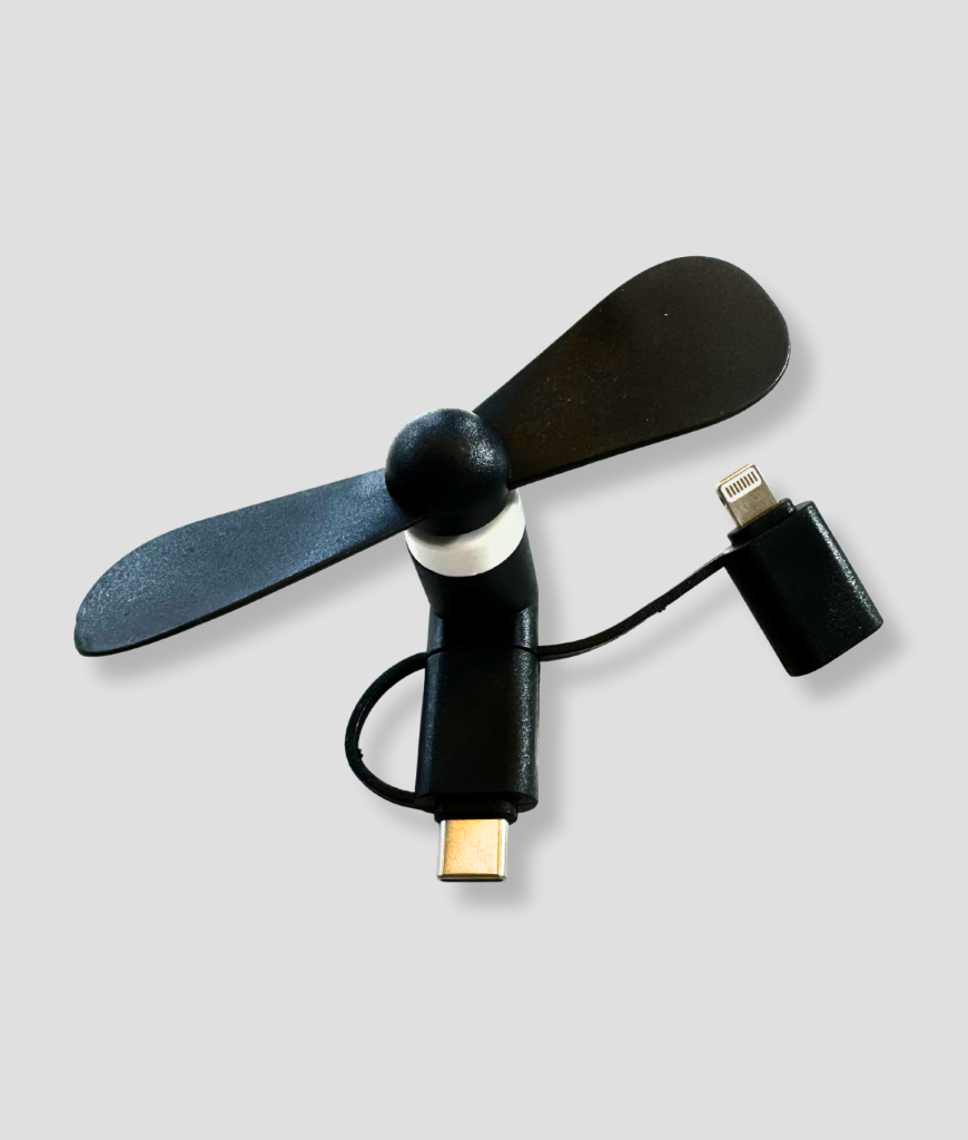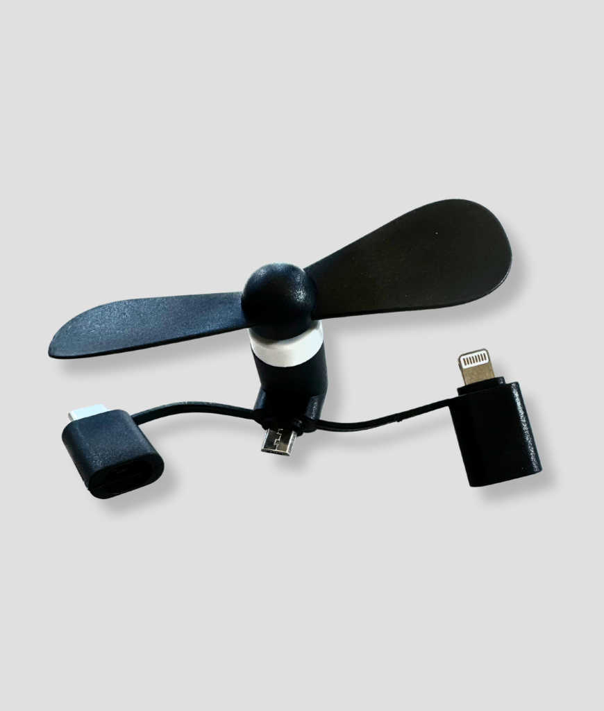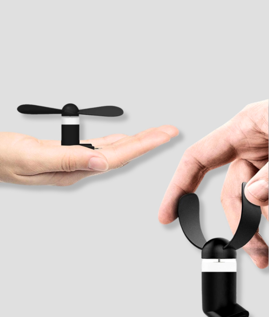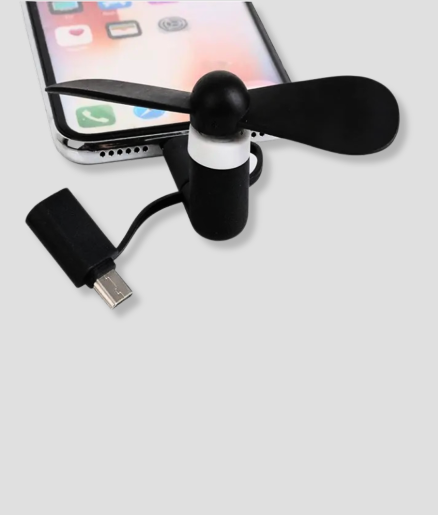 Klik deze ventilator in de onderkant van je mobiel en hij werkt direct. Werkt op alle telefoons mogelijk.