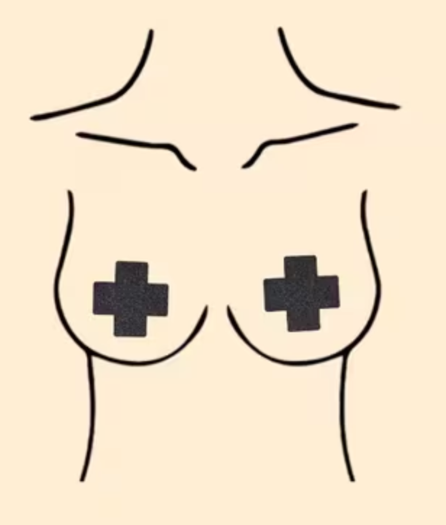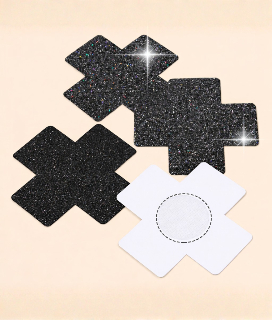 Maak je rave-outfit compleet met deze stoere zwarte kruis-tepelstickers! De perfecte finishing touch voor een gewaagde festival-look, zodat jij met 100% zelfvertrouwen kunt knallen bij de mainstage.