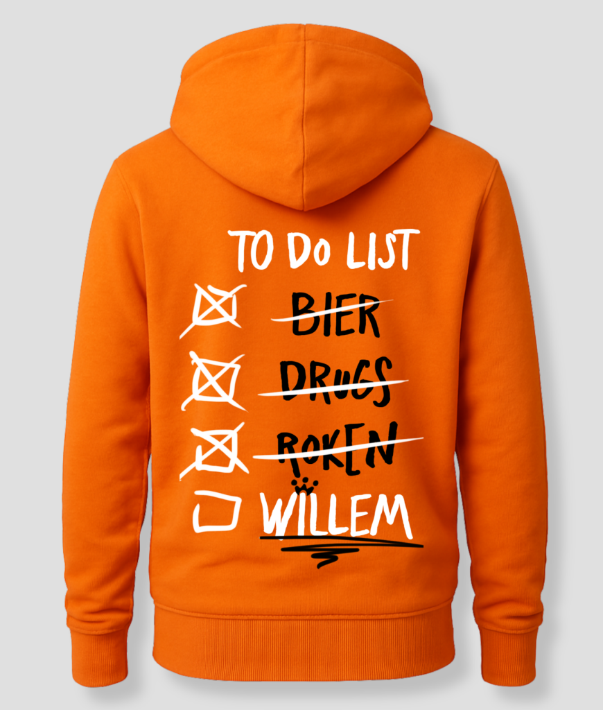 To do Willem – De hoodie voor degene die altijd klaar is om de taak te voltooien. Trek ‘m aan en laat zien dat jij de koning van je eigen agenda bent, of je nu aan het chillen bent of de wereld regeert!