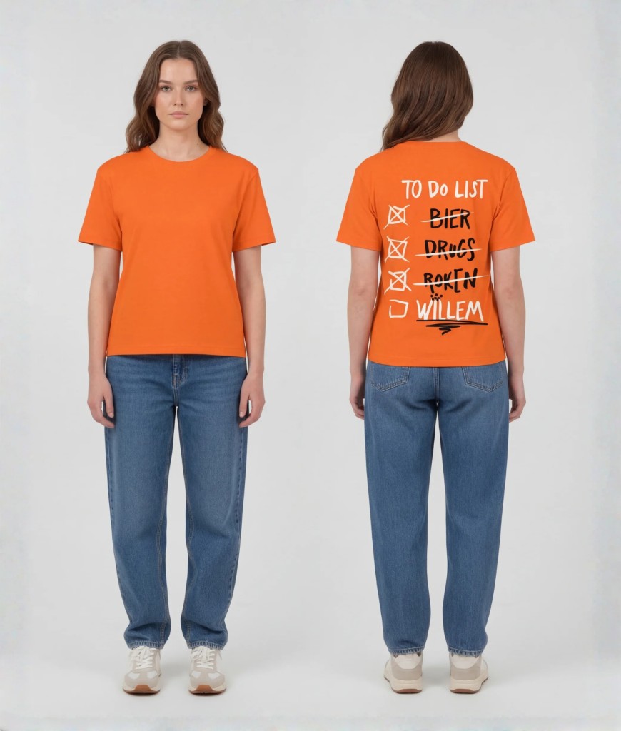 Tja hahah wat zal ik hier eens over zeggen… Ik denk dat wij de enige zijn in heel Nederland die de ballen hebben om dit soort dingen op een shirt te zetten. Koop dit shirts alsjeblieft dan kunnen we onze borgtocht volgende week ook betalen haha. Top shirt perfect voor Koningsdag, of andere oranje evenementen.