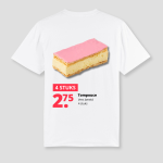 Dit shirt zet het meest iconische verjaardagssnackje ooit recht op je rug. Roze glazuur, romige vulling en dat onhandige moment waarop alles scheef zakt zodra je een hap neemt. Precies die vibe, maar dan draagbaar.