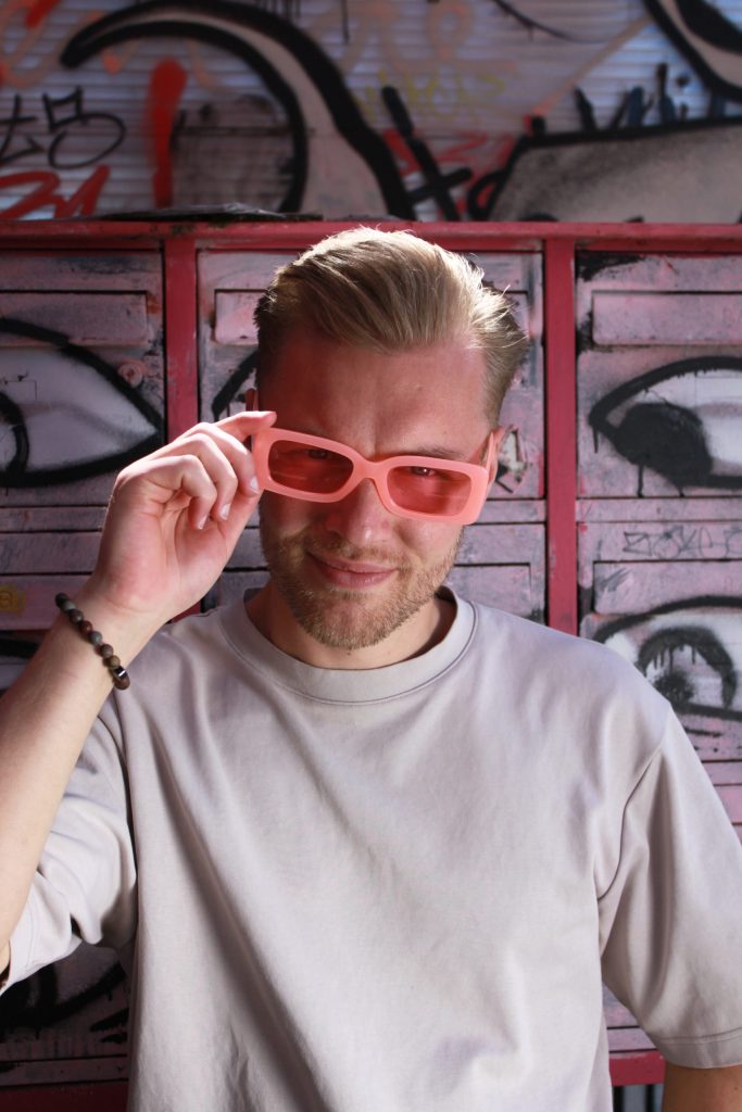Roze Topaz bril, lekker dansen – beuken en geen last van zon of felle lichten