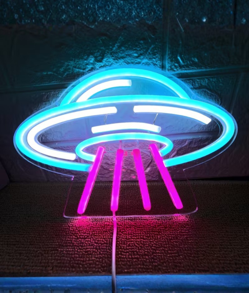 Met UFO Neon verandert elke kamer spontaan in een mini universum. Plots voelt je bureau minder saai, je gamehoek levendiger en je slaapkamer creatiever. Het is een lamp die energie geeft en elke dag een beetje avontuur toevoegt.