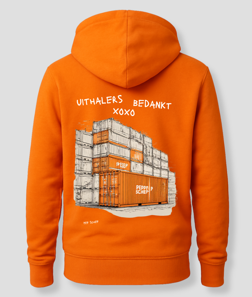 Zodra de zon ondergaat op het festival of je na een harde rave de kou in stapt, is deze feloranje Pep Schep hoodie je absolute redding. Met de iconische ‘Uithalers Bedankt XOXO’ rugprint steel je direct de show én blijf je heerlijk warm op elk huisfeestje of illegale rave.