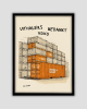Lijst met oranje zeecontainers en de tekst “UITHALERS BEDANKT xoxo”. Een strakke, satirische eyecatcher voor je muur.