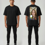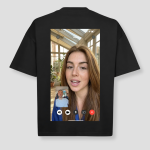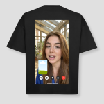 Met deze zwarte T-shirt ben je klaar voor festivals, raves en feestjes. De print van een videochat met Alexia maakt je outfit speels en opvallend. Dit unieke ontwerp zorgt ervoor dat je echt opvalt.