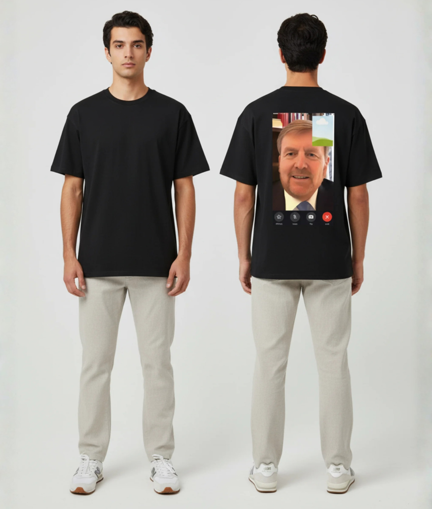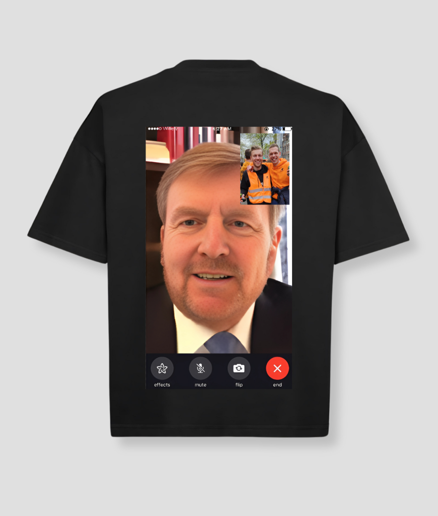 Videocall eigen foto – Voor iedereen die zijn dagelijkse meetings met Willem gewoon op z’n shirt wil dragen. Upload je eigen foto en maak van elk moment een koninklijk FaceTime-gesprek.