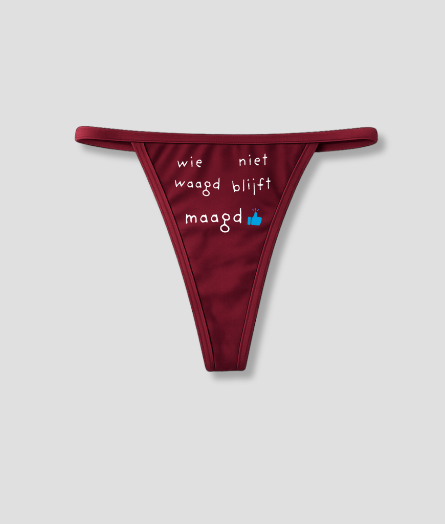 Gemaakt voor foute humor Deze string is duidelijk bedoeld als grap-item. Perfect voor vrijgezellenfeesten, huisfeestjes, festivals of een avond waarop alles net wat losser mag. Ook leuk als cadeautje met een knipoog. Je koopt ’m om de tekst, niet omdat je op zoek bent naar serieus ondergoed.