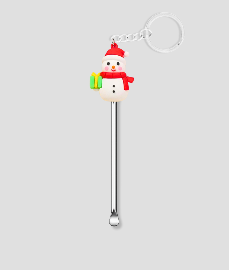 De witte sneeuwpop is zo’n schepje dat meteen voelt alsof je mok een kerstmuts opzet. Bovenaan zit een klein sneeuwmannetje dat er alles aan doet om je ochtend wat minder grauw te maken, compleet met rode muts, rode sjaal en een mini cadeautje dat hij stevig vasthoudt. Het is dat type figuur waarvan je denkt: hij maakt nul geluid, maar toch brengt hij sfeer alsof hij al jaren bij je in huis rondhangt.