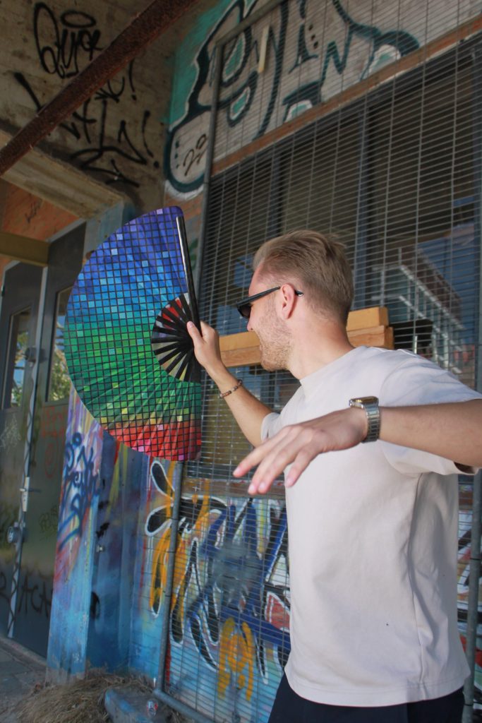 Stijlvol afkoelen op elk festival! Deze prachtige waaier met unieke print is gemaakt van extra stevig materiaal voor jarenlang plezier. Perfect voor warme dagen en een must-have voor jouw festivaluitrusting! Ook lekker voor als je met al je maten linksvoor staat en je ff je groep moet af laten koelen.