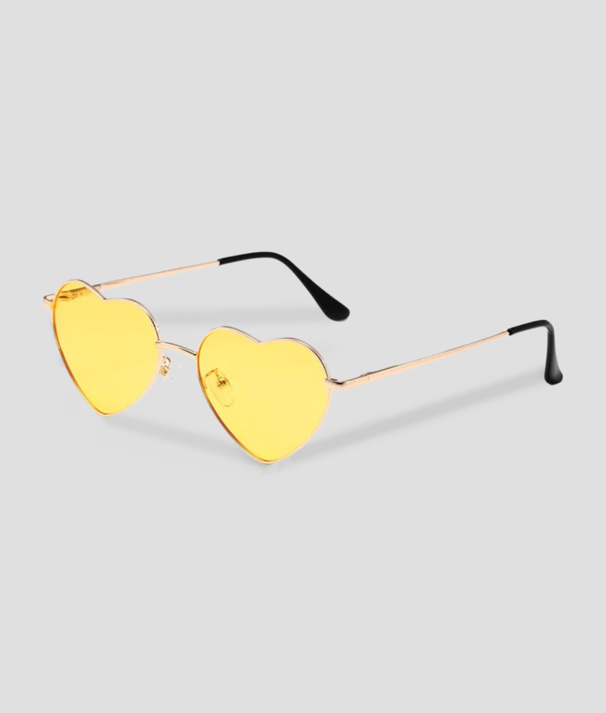 De zonnige tinten van de Yellow Heart vangen het licht op een magische manier en geven alles om je heen een gouden gloed. Het hartvormige design voegt een speelse, romantische touch toe, terwijl het slanke metalen frame zorgt voor een stijlvolle en moderne afwerking.