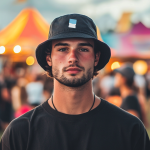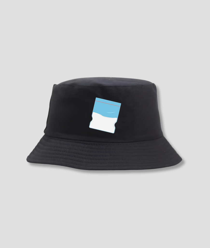 Geef je stijl een edgy upgrade met deze zwarte buckethat, versierd met een illustratie van een zakje. Perfect voor de trendsetters die niet bang zijn om op te vallen en een beetje attitude aan hun outfit toe te voegen. Deze hoed is ideaal voor festivals of als statement piece in je dagelijkse look. Zet ‘m op en laat zien dat jij de coolness en de flair hebt!