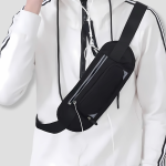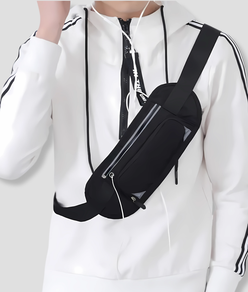 Zipper is clean en functioneel met een eigen smoel. Het matzwarte body oogt tactisch, de duidelijke ritsen doen precies wat ze beloven en die doorzichtige strook aan de voorzijde geeft je easy toegang tot wat je steeds wilt zien of pakken—denk aan je pasje, telefoon of timetable. Het silhouet blijft low-profile zodat je soepel door de menigte glijdt, maar pakt net genoeg glans onder de lasers om mee te spelen met het nachtleven. City overdag, festival ’s nachts—Zipper blendt overal in en voelt altijd on point.