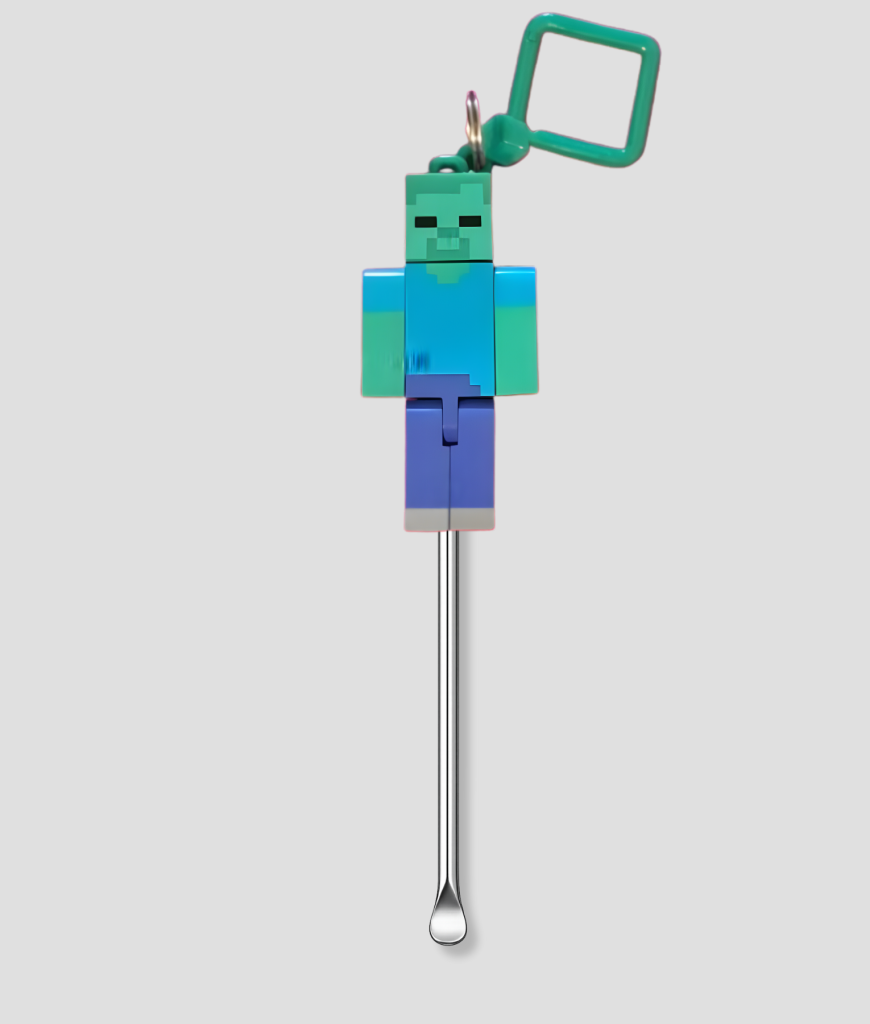 Deze zombie heeft niets te maken met enge films of hersenjacht. Hij hangt gewoon relaxed aan je schepje alsof hij net uit een blokjeswereld is gestapt en nu bij jou in de mok is terechtgekomen. Het is dat soort vibe waar iemand meteen zegt: ja hoor, dit past precies bij iemand die met één oog open nog zijn ochtend probeert te starten na een nacht die veel langer duurde dan gepland.