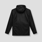 Deze zwarte regenjas is gemaakt voor dagen waarop het weer geen zin heeft om mee te werken. De jas heeft een ritssluiting aan de voorkant, een capuchon met trekkoord en twee steekzakken.